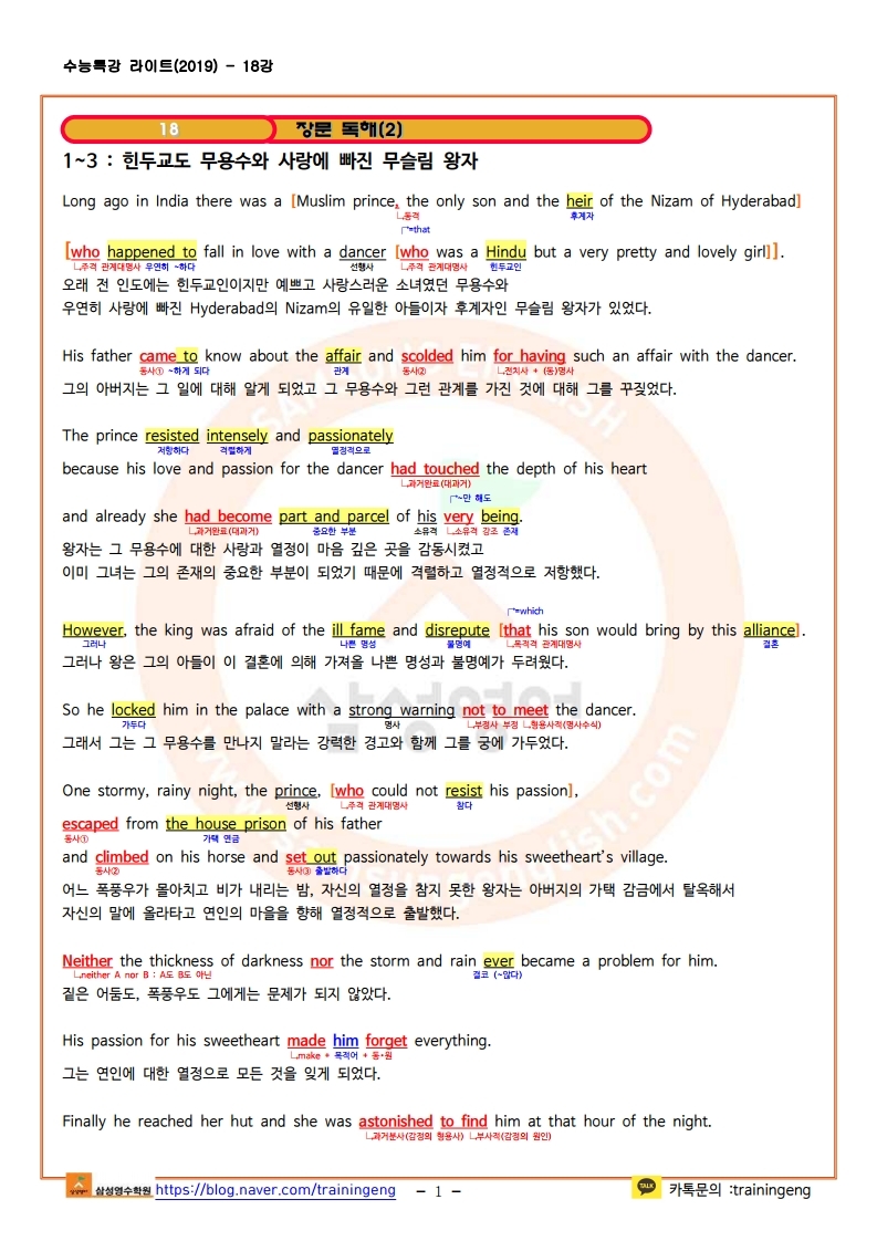 수능특강 라이트 18강 본문분석 및 한줄해석