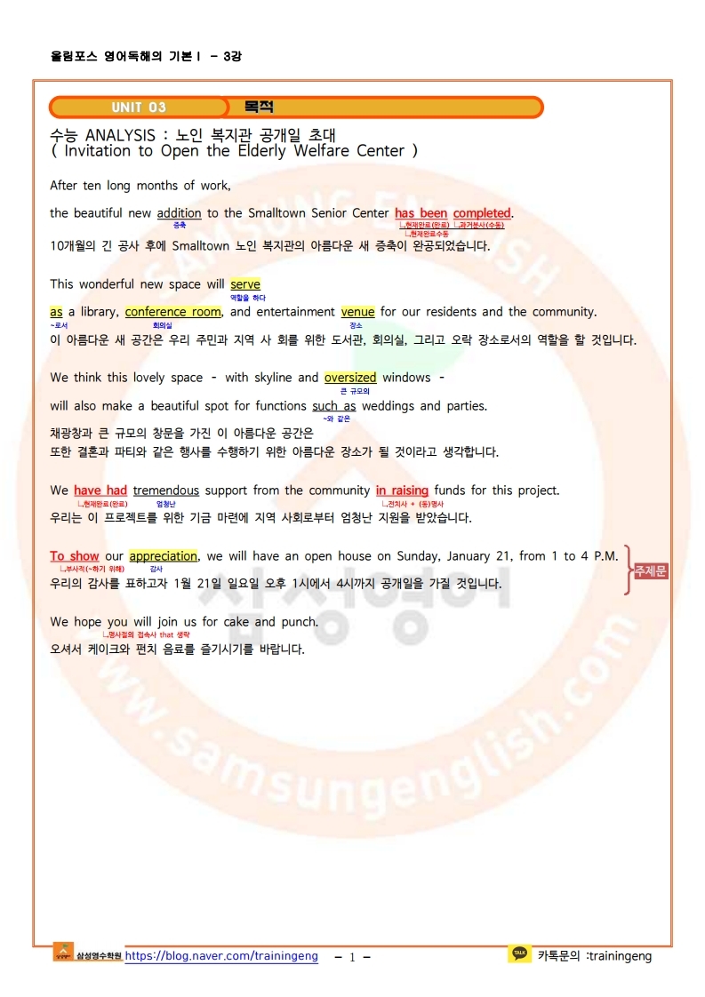 올림포스 영어독해의 기본1 - 3강 지문분석 및 한줄해석
