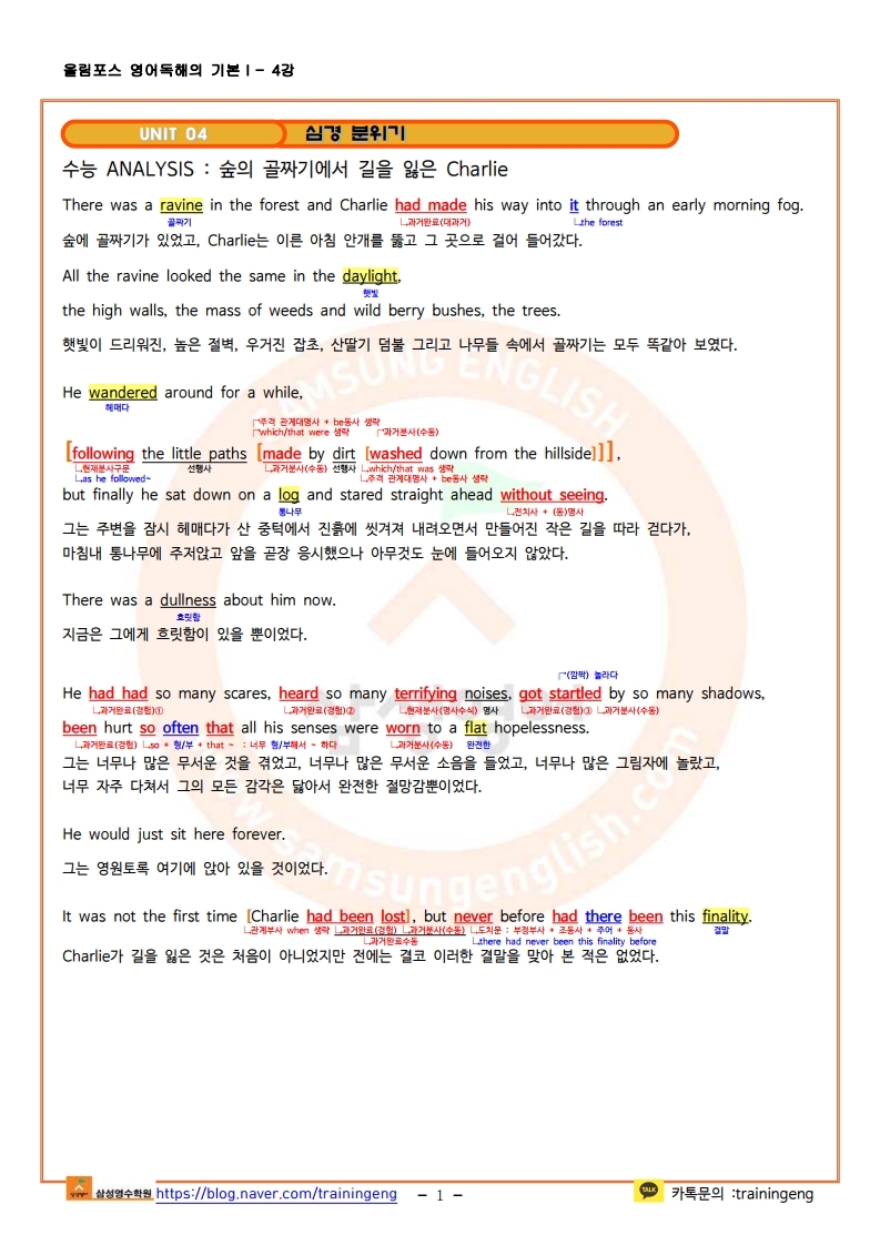 올림포스 영어독해의 기본1 - 4강 지문분석 및 한줄해석