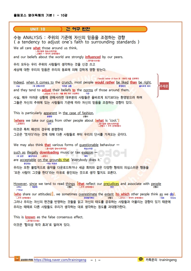 올림포스 영어독해의 기본1 - 10강 지문분석 및 한줄해석