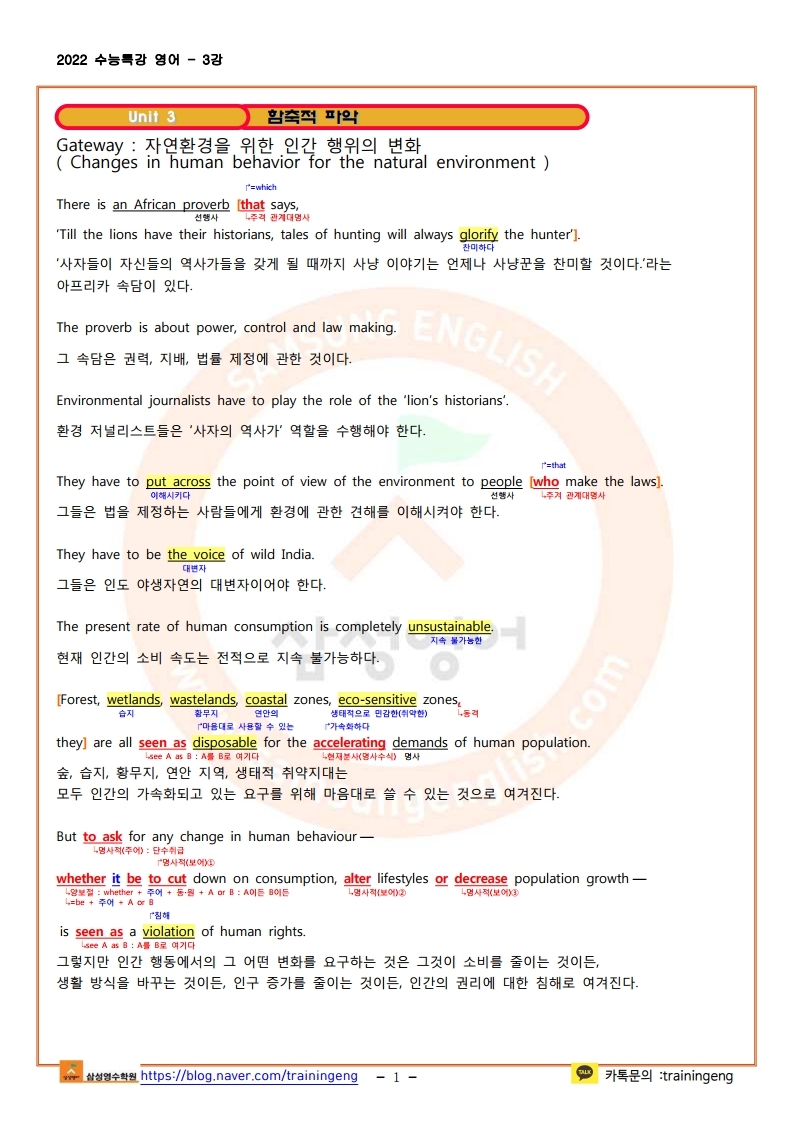2022 수능특강 영어 3강 지문분석 및 한줄해석