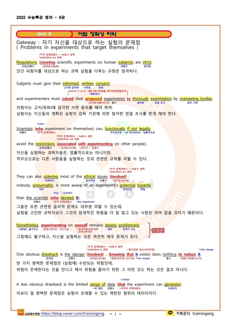 2022 수능특강 영어 9강 지문분석 및 한줄해석