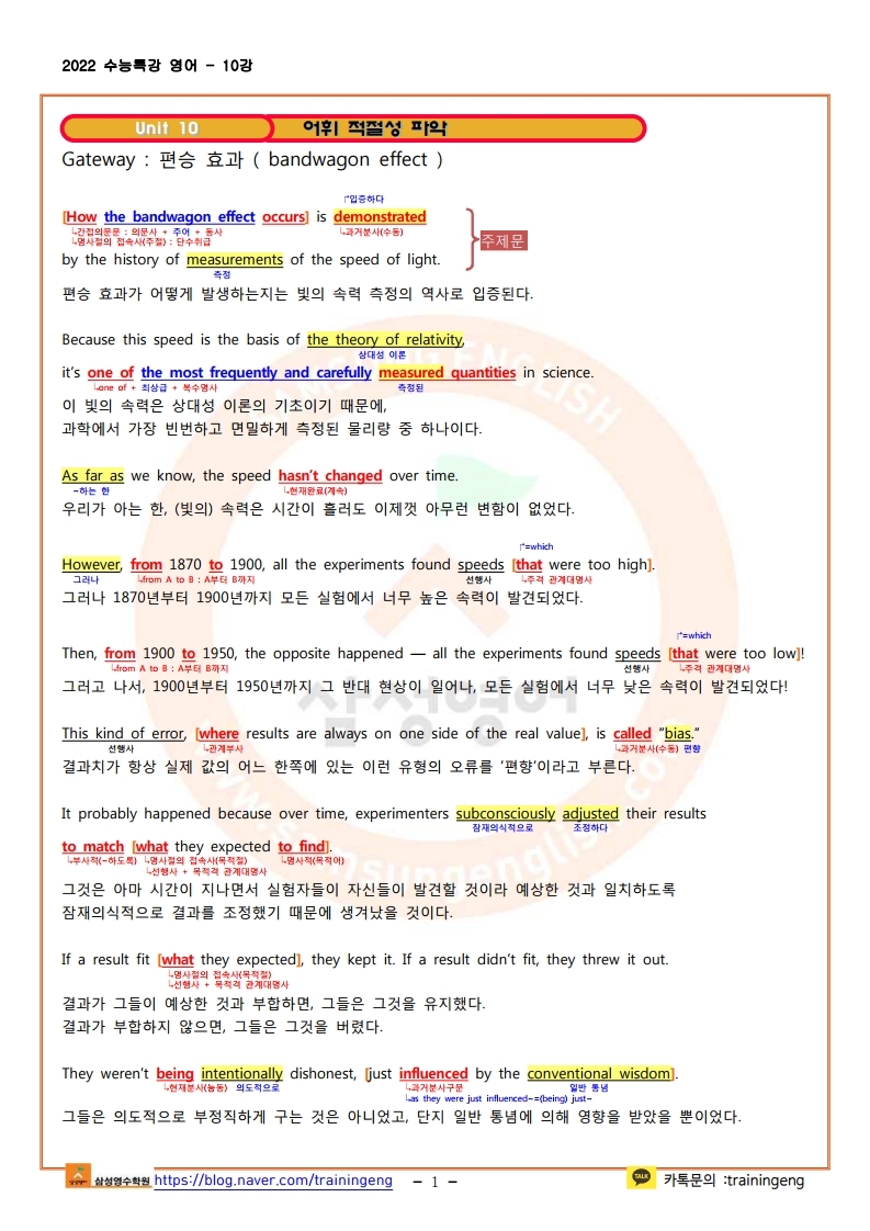 2022 수능특강 영어 10강 지문분석 및 한줄해석