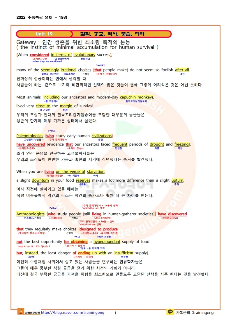 2022 수능특강 영어 19강 지문분석 및 한줄해석