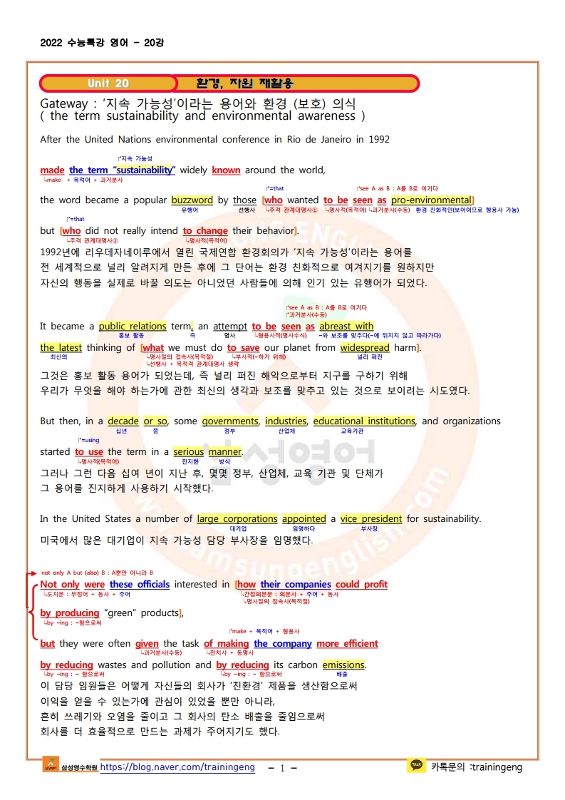 2022 수능특강 영어 20강 지문분석 및 한줄해석