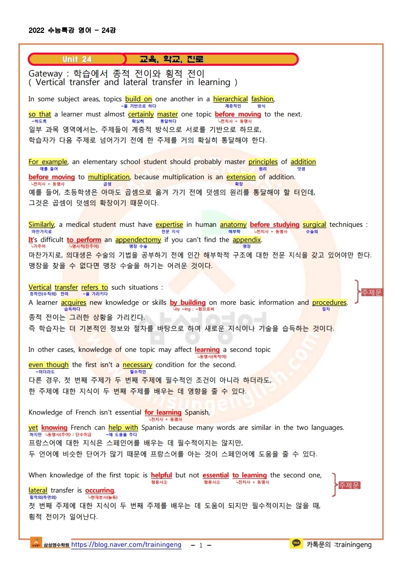 2022 수능특강 영어 24강 지문분석 및 한줄해석