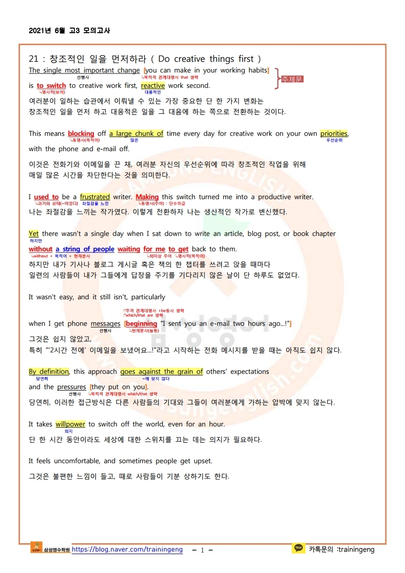 2021년 6월 고3 모의고사 한줄해석 및 지문분석(21-24,29-40)