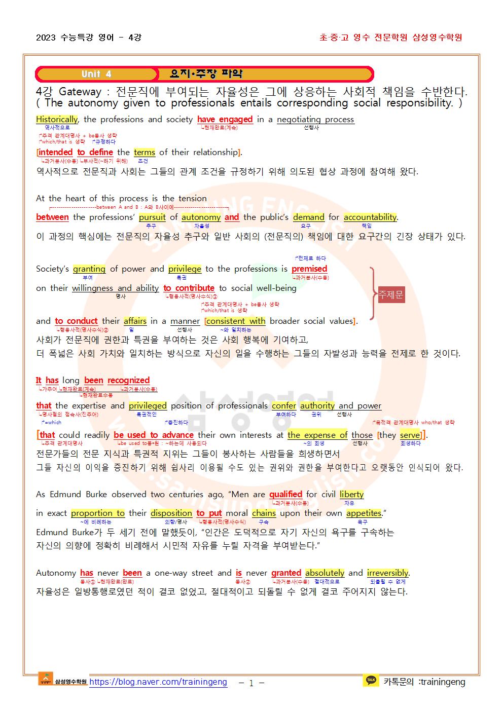 2023 수능특강 영어 4강 지문분석 및 한줄해석