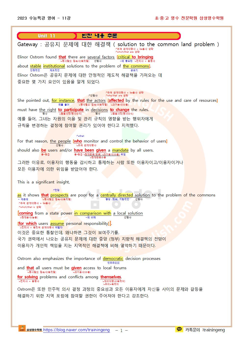 2023 수능특강 영어 11강 지문분석 및 한줄해석