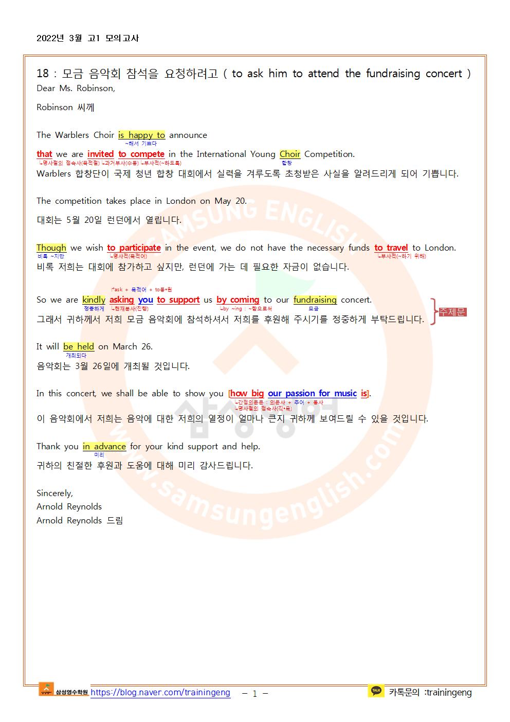 2022년 3월 고1 모의고사 한줄해석 및 지문분석(25,27,28,43~45제외)