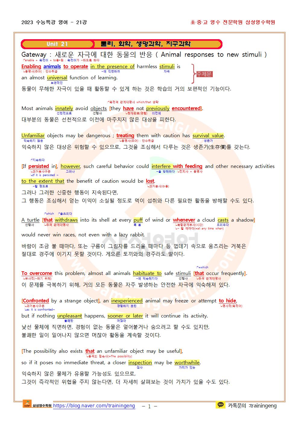 2023 수능특강 영어 21강 지문분석 및 한줄해석