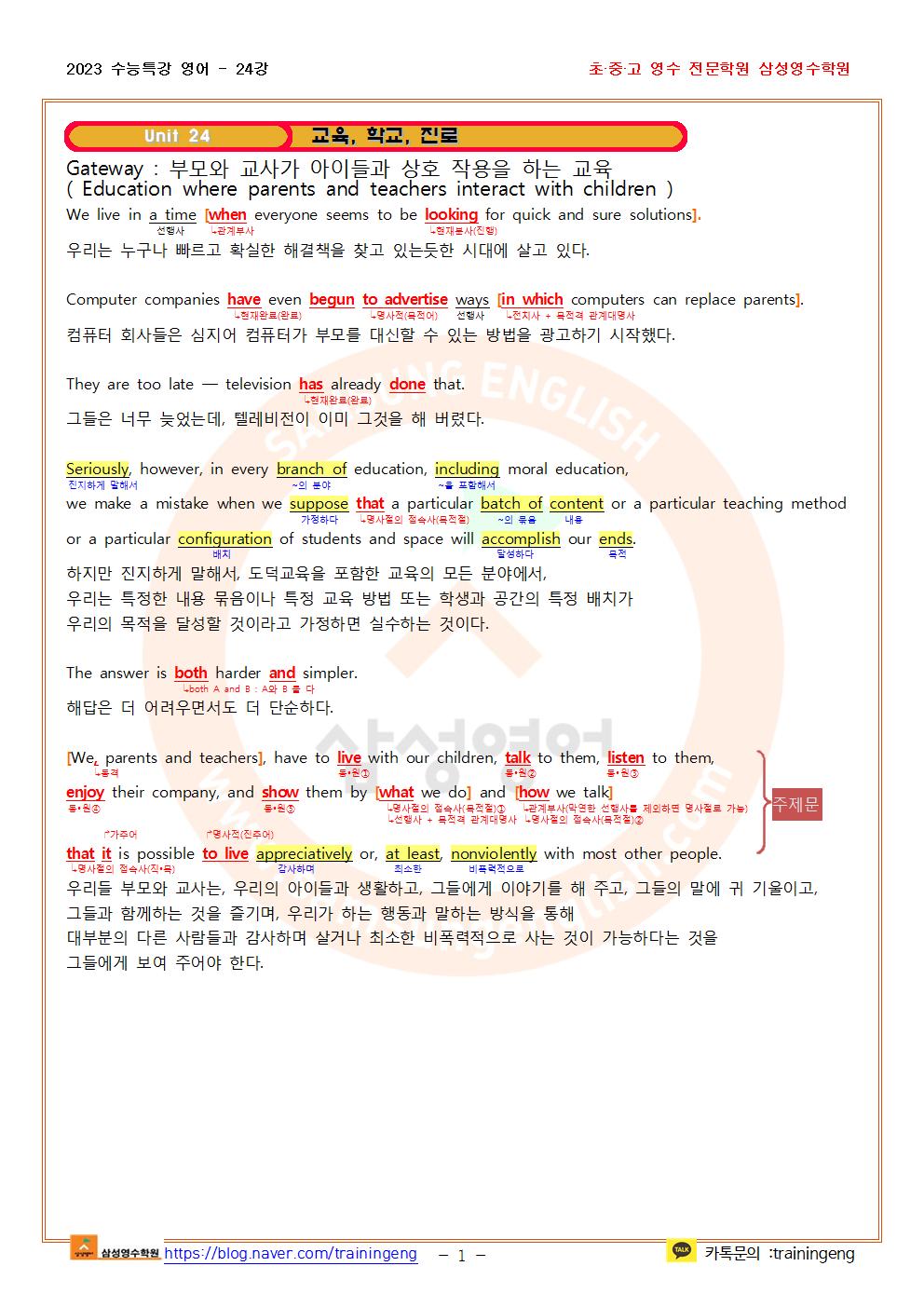 2023 수능특강 영어 24강 지문분석 및 한줄해석