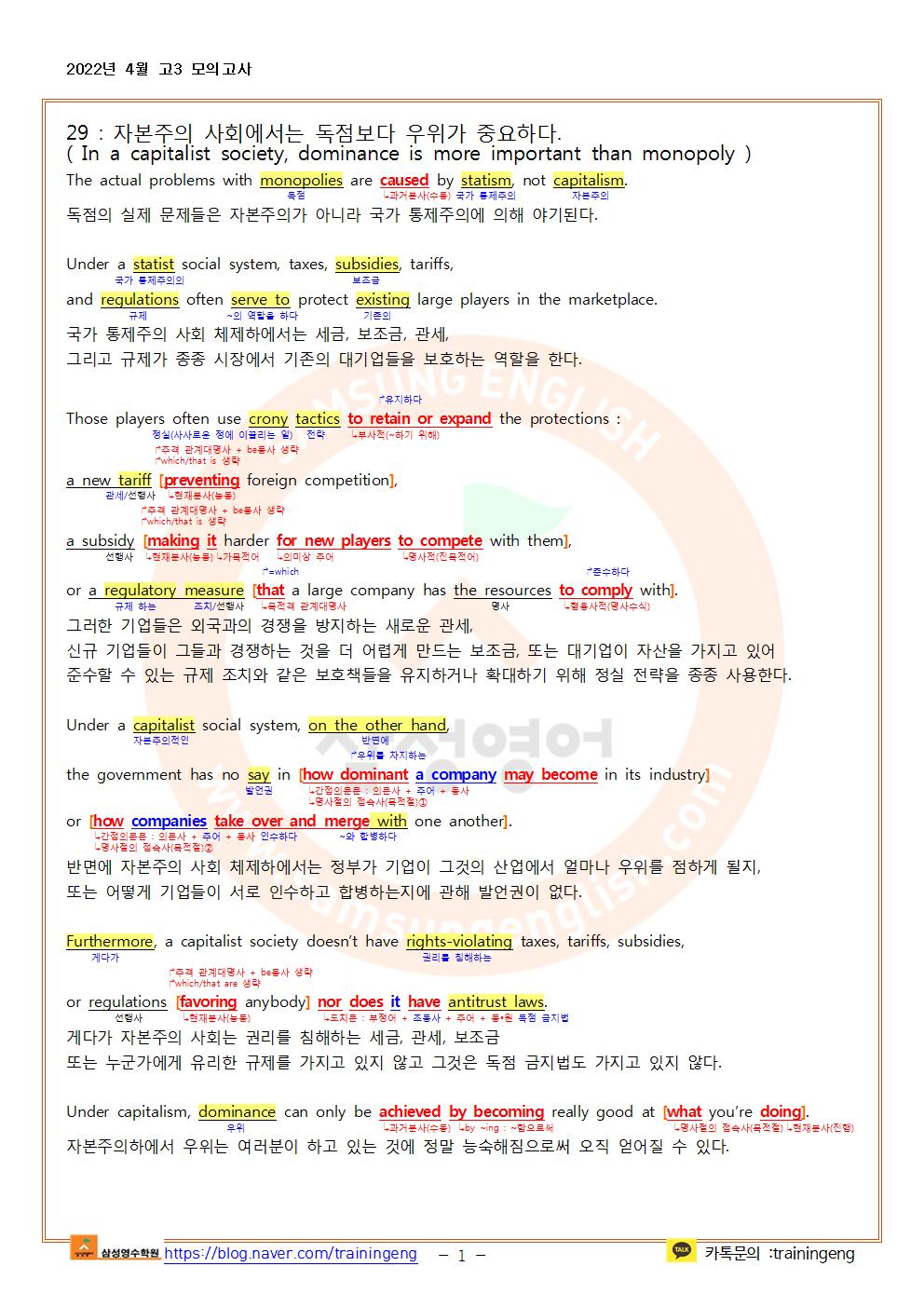 2022년 4월 고3 모의고사 한줄해석 및 지문분석(29~40)