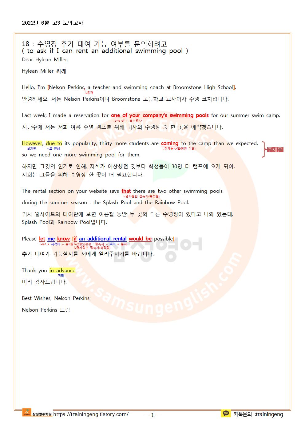 오픈채팅 : 삼성영어 황산교실