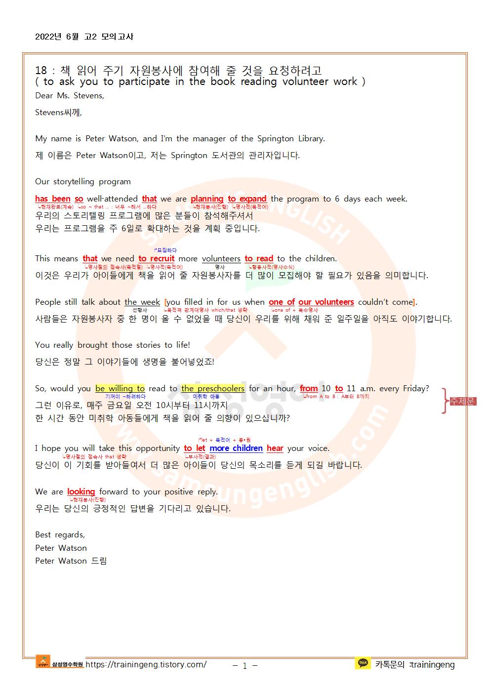 2022년 6월 고2 모의고사 한줄해석 및 지문분석(25~29,41~45제외)