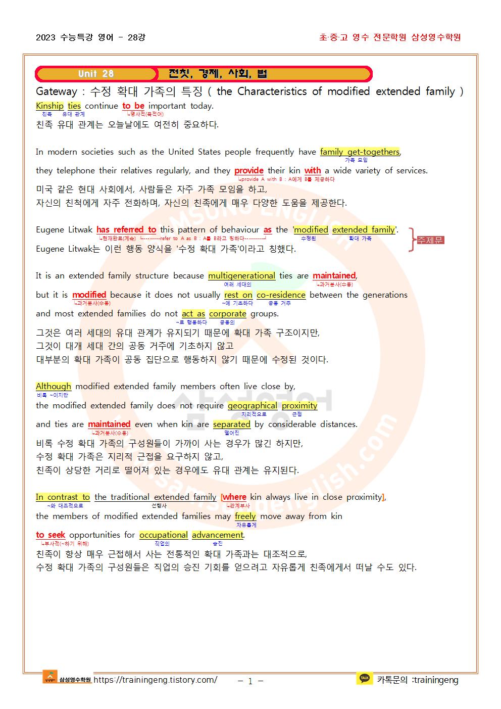 2023 수능특강 영어 28강 지문분석 및 한줄해석