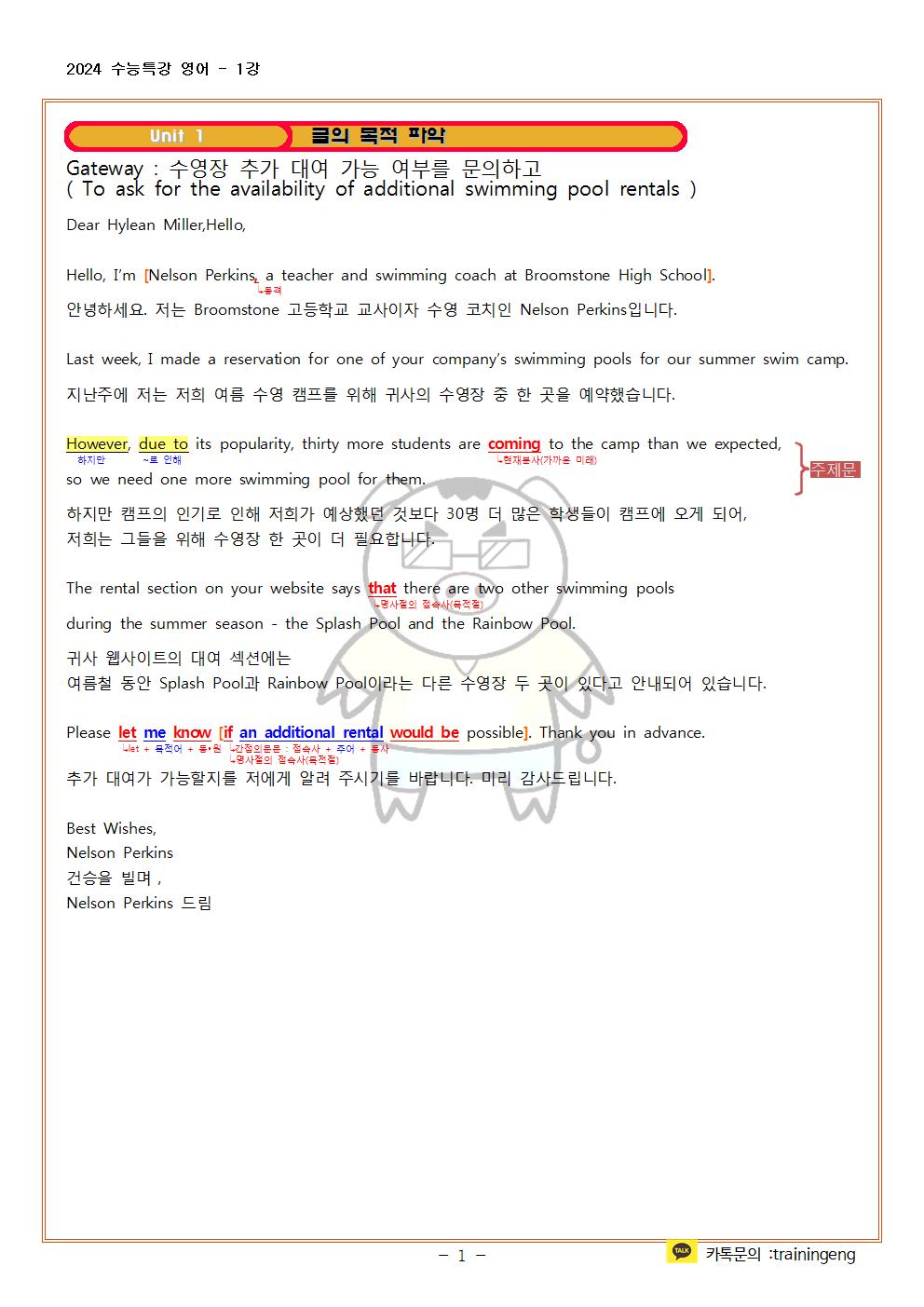 2024 수능특강 영어 1강 지문분석 및 한줄해석
