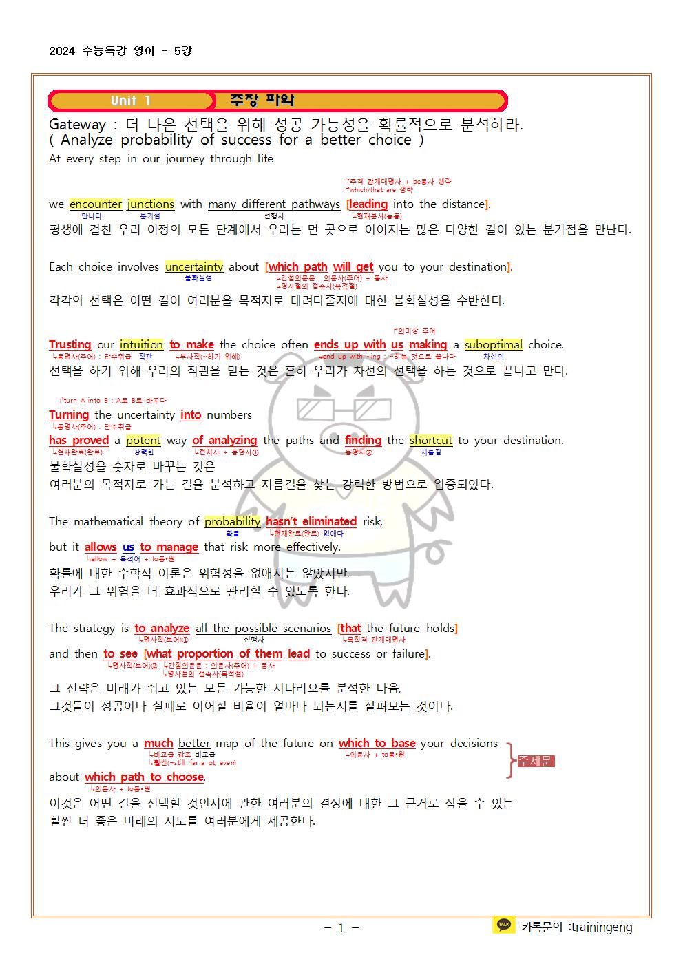 2024 수능특강 영어 5강 지문분석 및 한줄해석