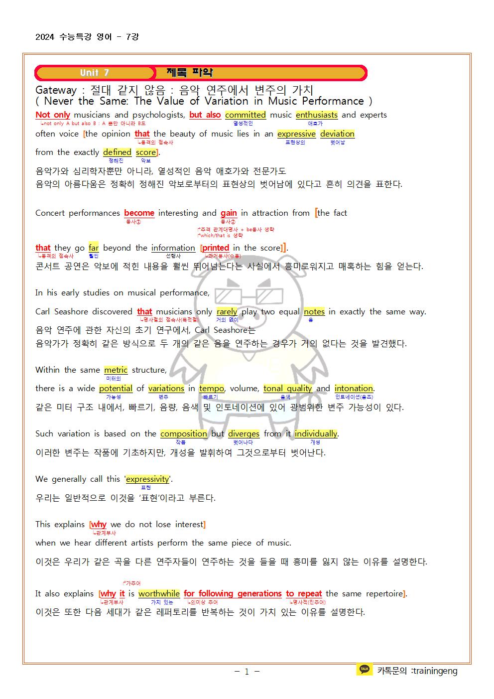 2024 수능특강 영어 7강 지문분석 및 한줄해석