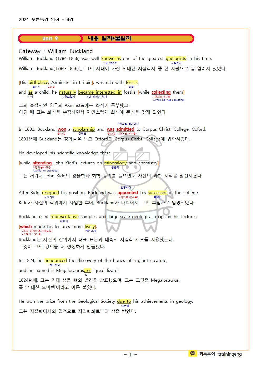 2024 수능특강 영어 9강 지문분석 및 한줄해석