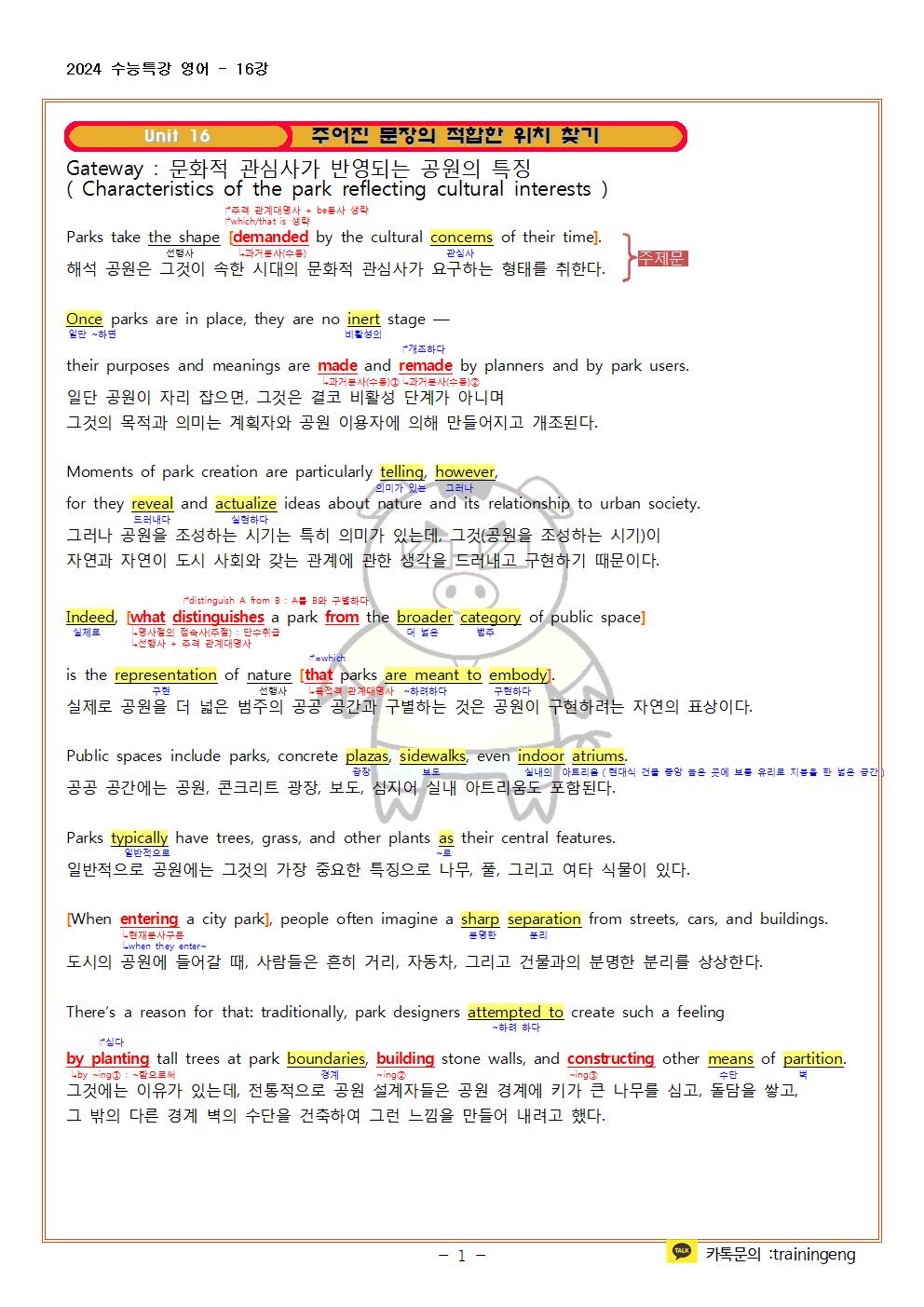 2024 수능특강 영어 16강 지문분석 및 한줄해석