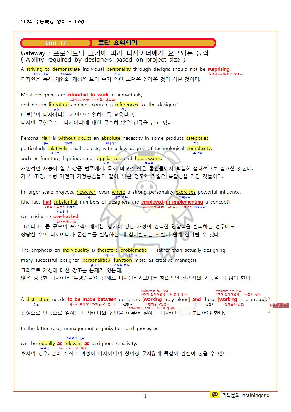 2024 수능특강 영어 17강 지문분석 및 한줄해석