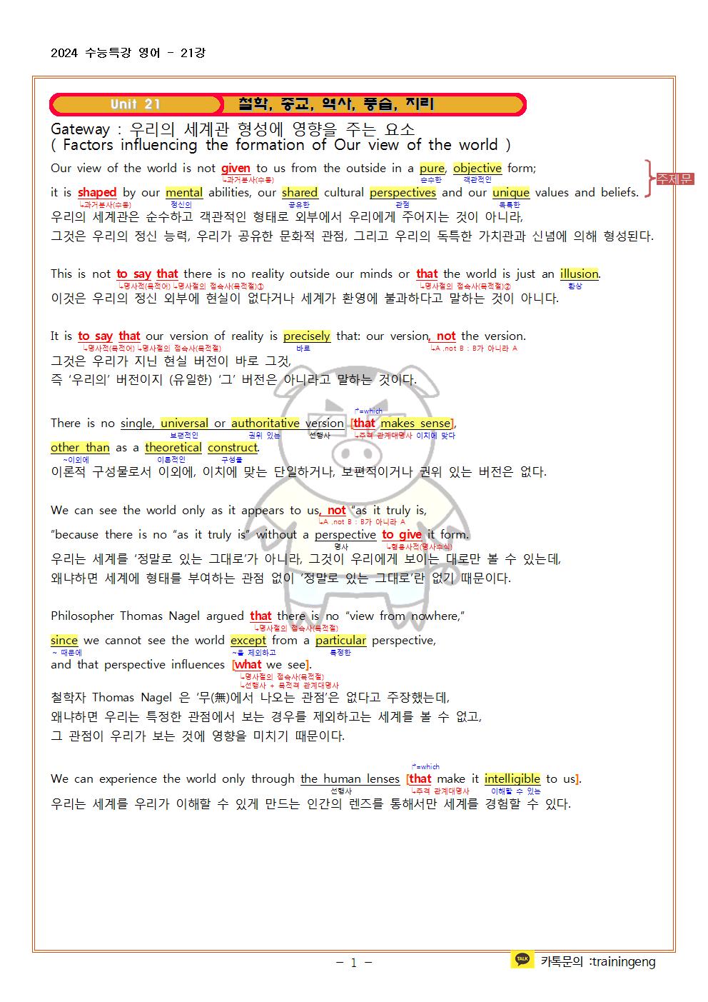 2024 수능특강 영어 21강 지문분석 및 한줄해석