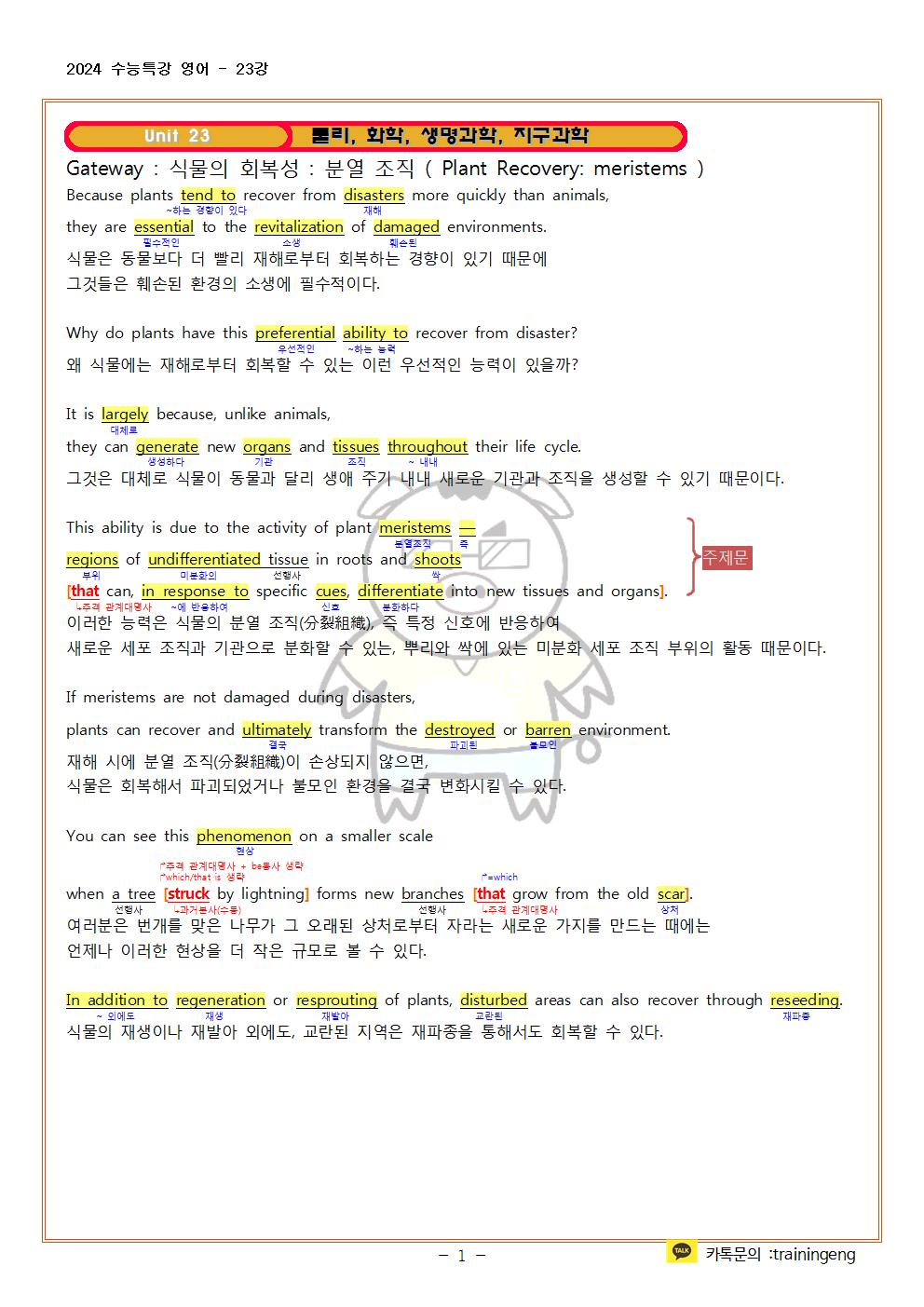 2024 수능특강 영어 23강 지문분석 및 한줄해석