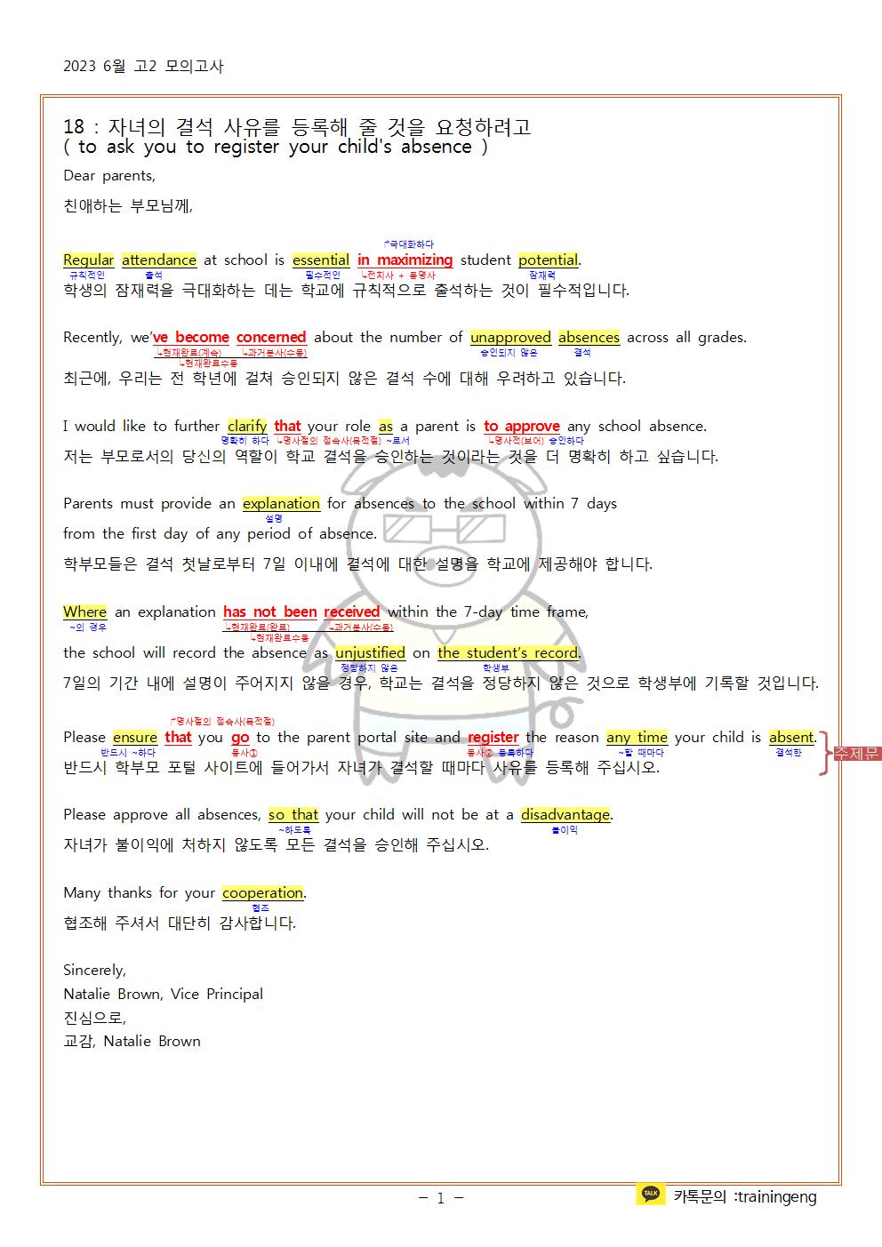 2023년 6월 고2 모의고사 한줄해석 및 지문분석