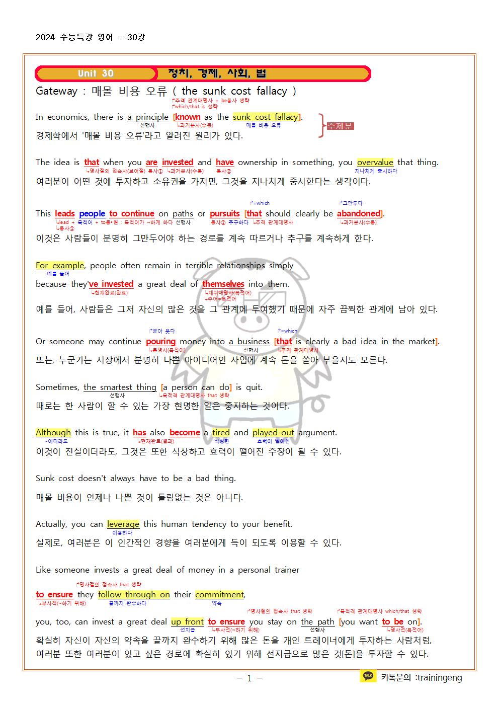 2024 수능특강 영어 30강 지문분석 및 한줄해석