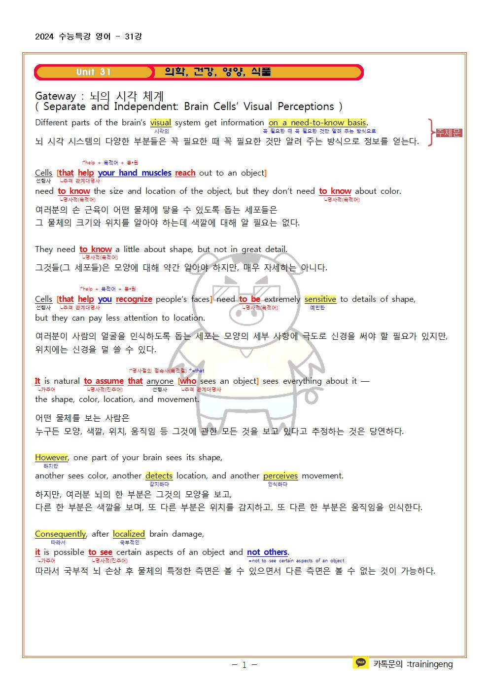 2024 수능특강 영어 31강 지문분석 및 한줄해석