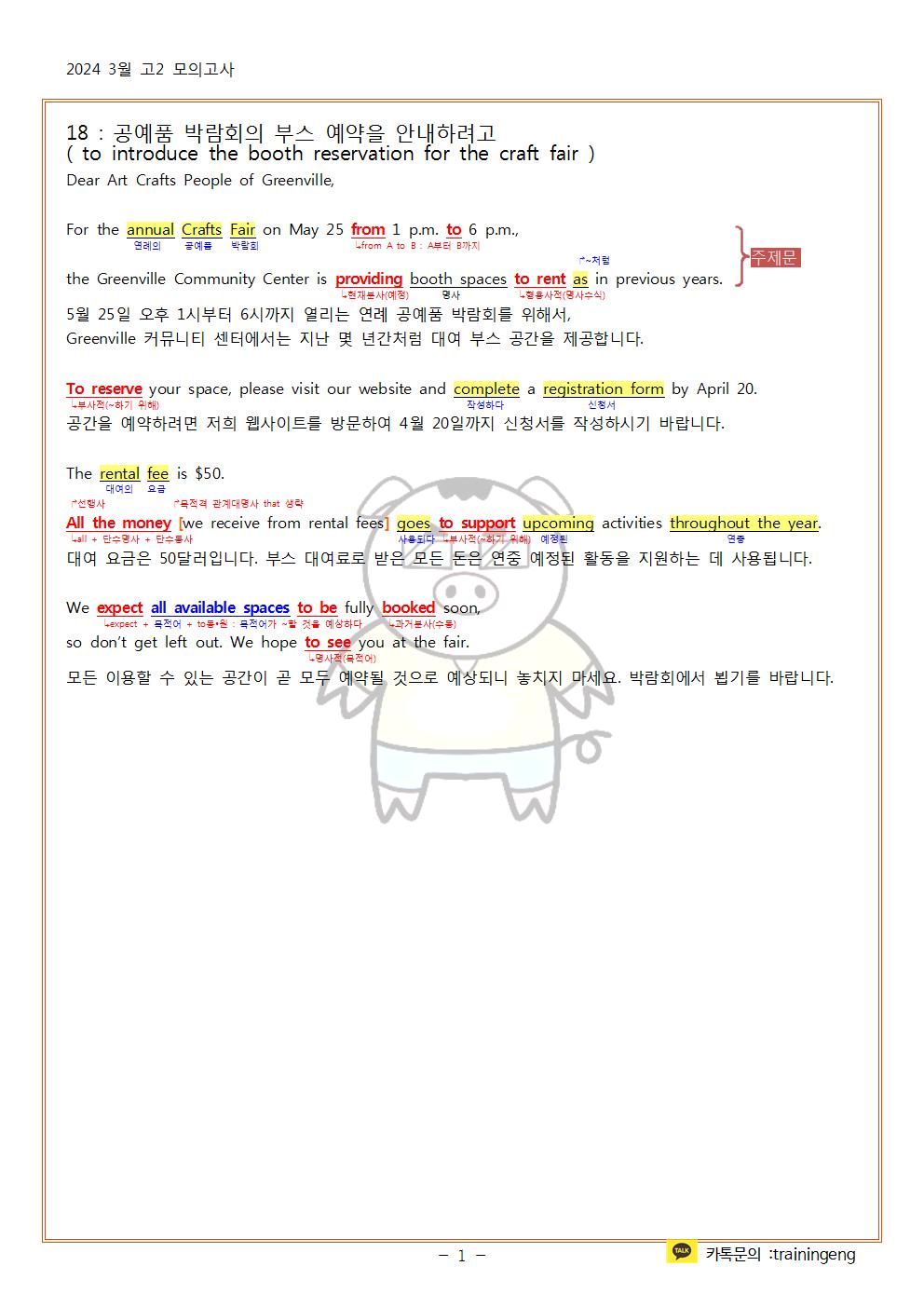 2024년 3월 고2 모의고사 한줄해석 및 지문분석