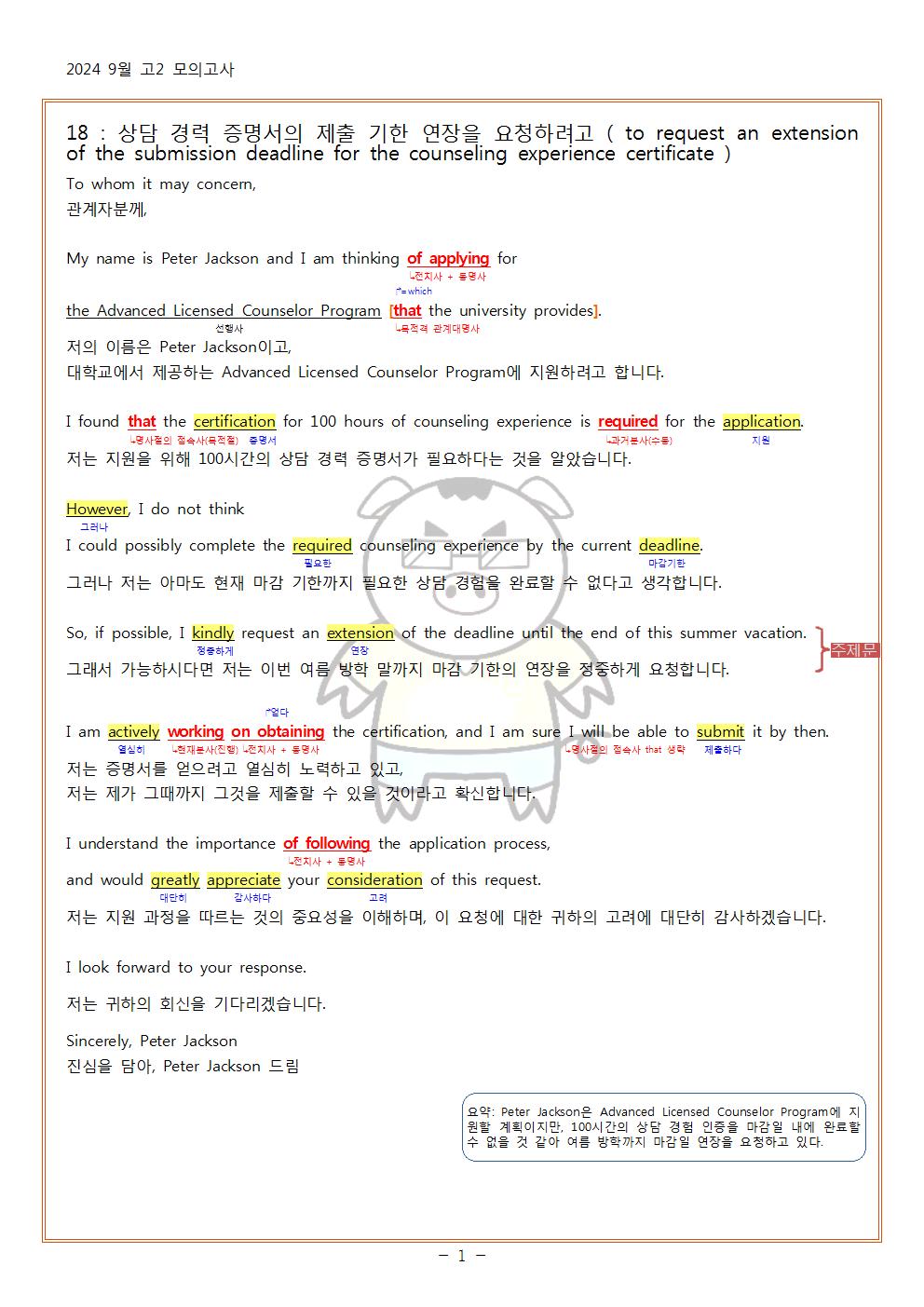2024년 9월 고2 모의고사 한줄해석 및 지문분석
