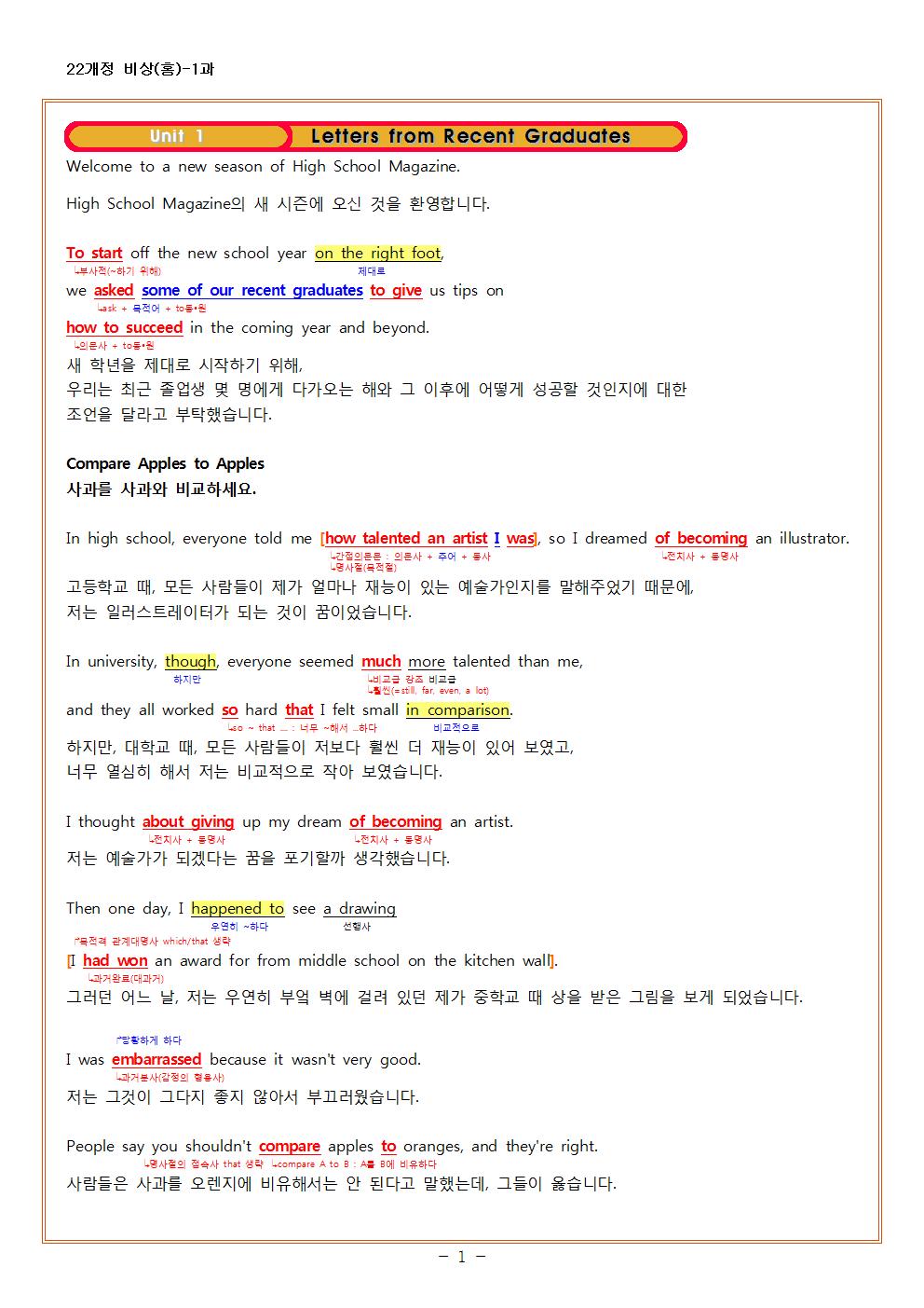 | 2022개정 공통영어1 비상(홍) 3과 read more 상세분석(5/17 수정) (1) | 2025.05.04 |
