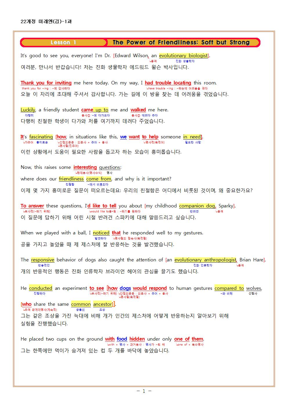 2022개정 공통영어1 미래엔(김) 2과 지문분석 및 한줄해석 (3) | 2025.02.26 |
