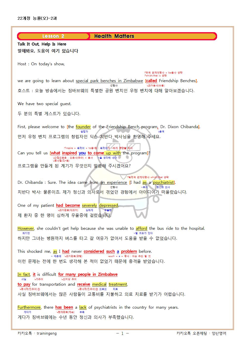 | 2022개정 공통영어1 능률(오) 1과 지문분석 및 한줄해석 (2) | 2025.02.25 |