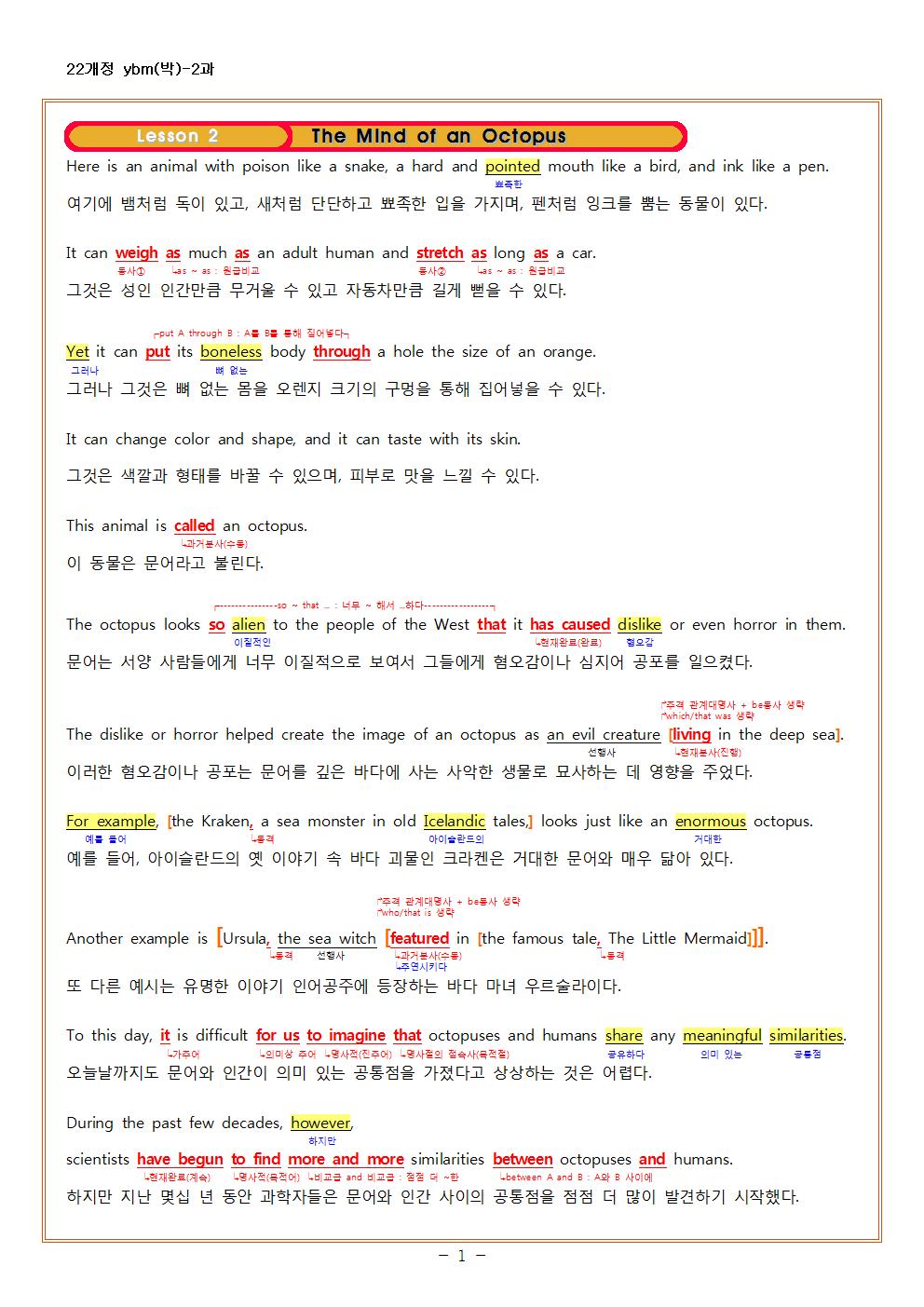| 2022개정 공통영어1 ybm(박) 1과 한줄해석 및 지문분석 (6) | 2025.03.08 |