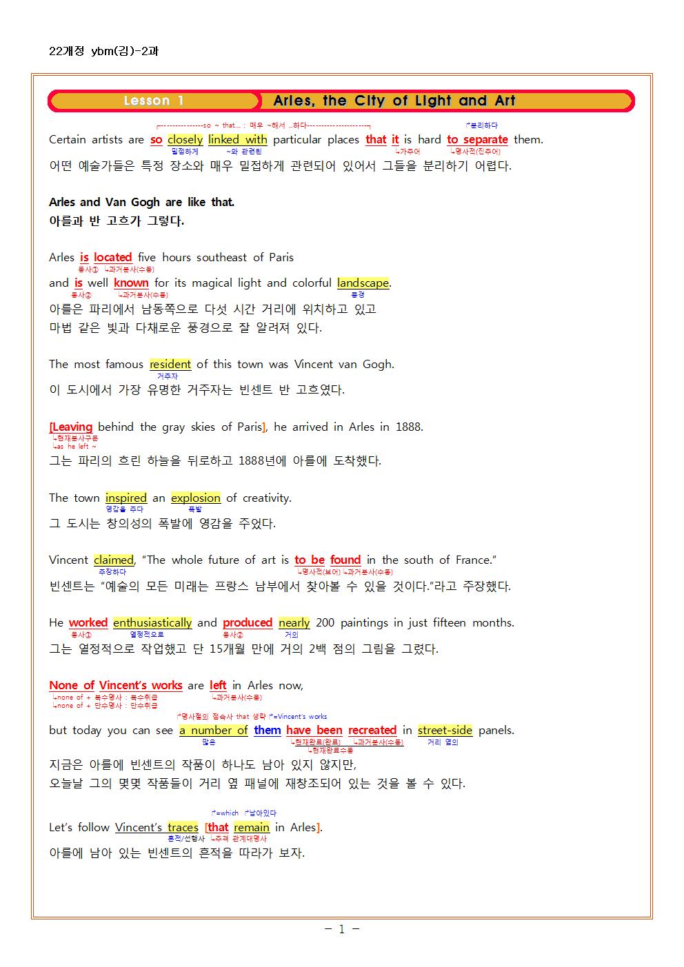 | 2022개정 공통영어1 ybm(김) 1과 한줄해석 및 지문분석 (0) | 2025.03.10 |