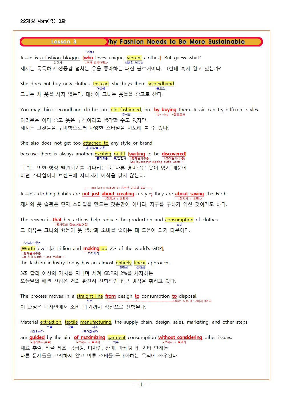 | 2022개정 공통영어1 ybm(김) 1과 한줄해석 및 지문분석 (0) | 2025.03.10 |