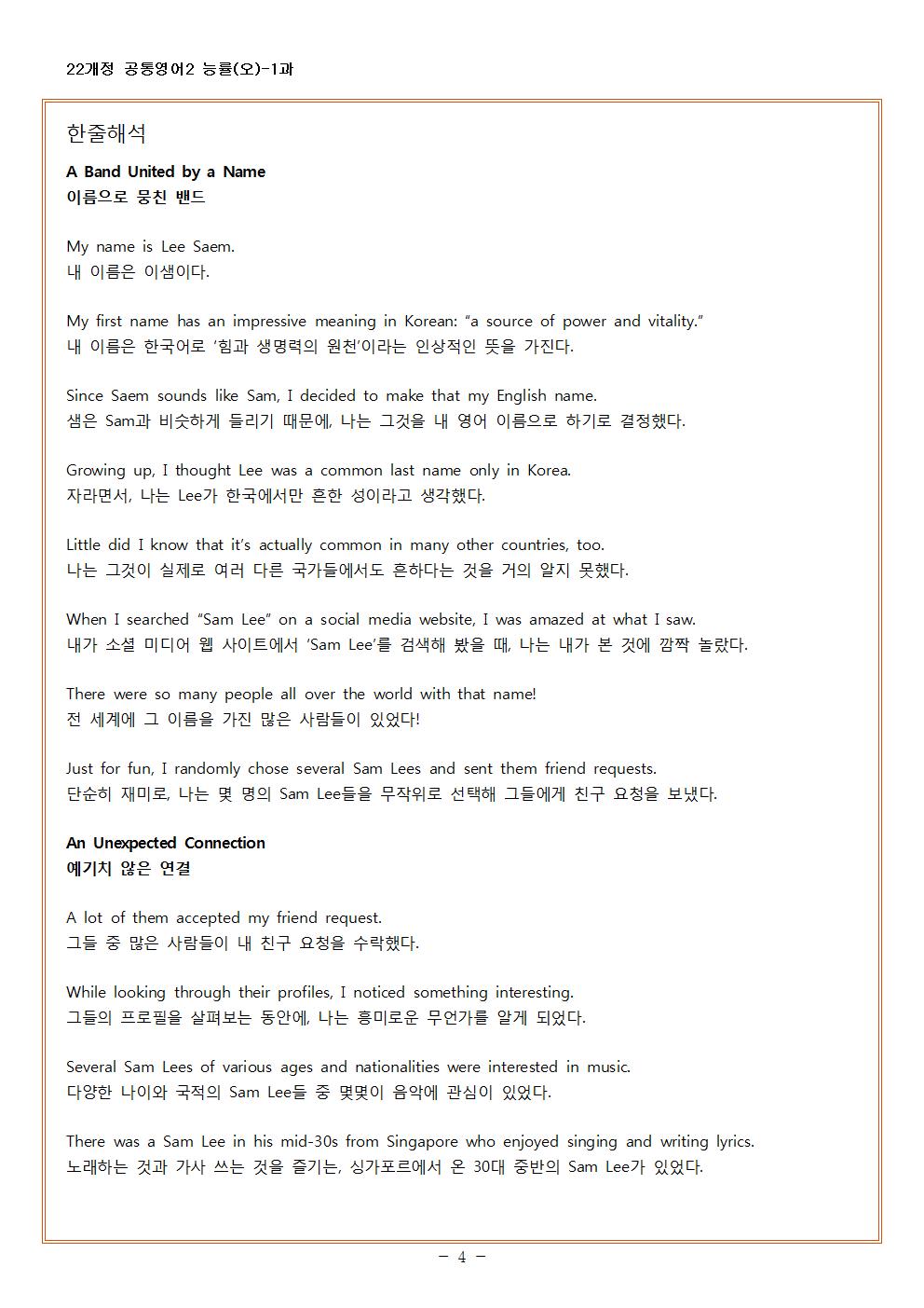 | 2022개정 공통영어2 능률(오) 4과 상세분석 (0) | 2025.10.24 |