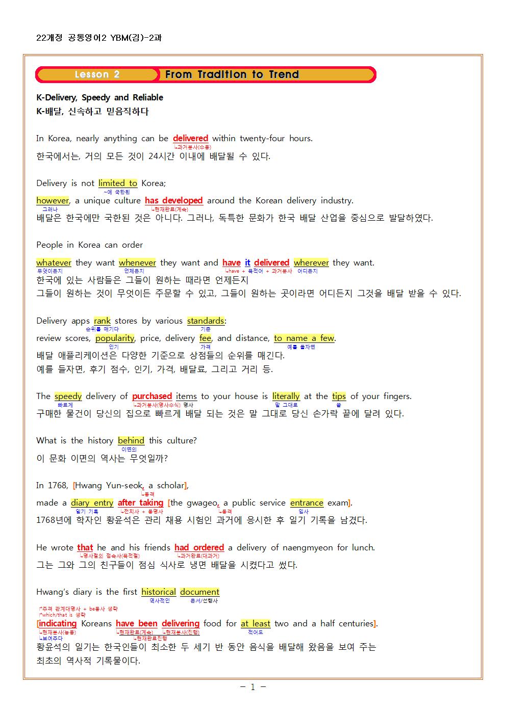 | 2022개정 공통영어2 YBM(김) 1과 상세분석 (3) | 2025.09.01 |