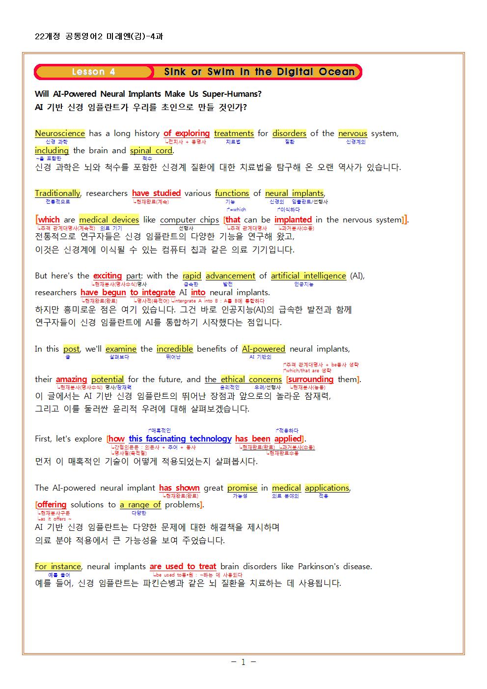 | 2022개정 공통영어2 미래엔(김) 1과 상세분석 (1) | 2025.08.29 |
