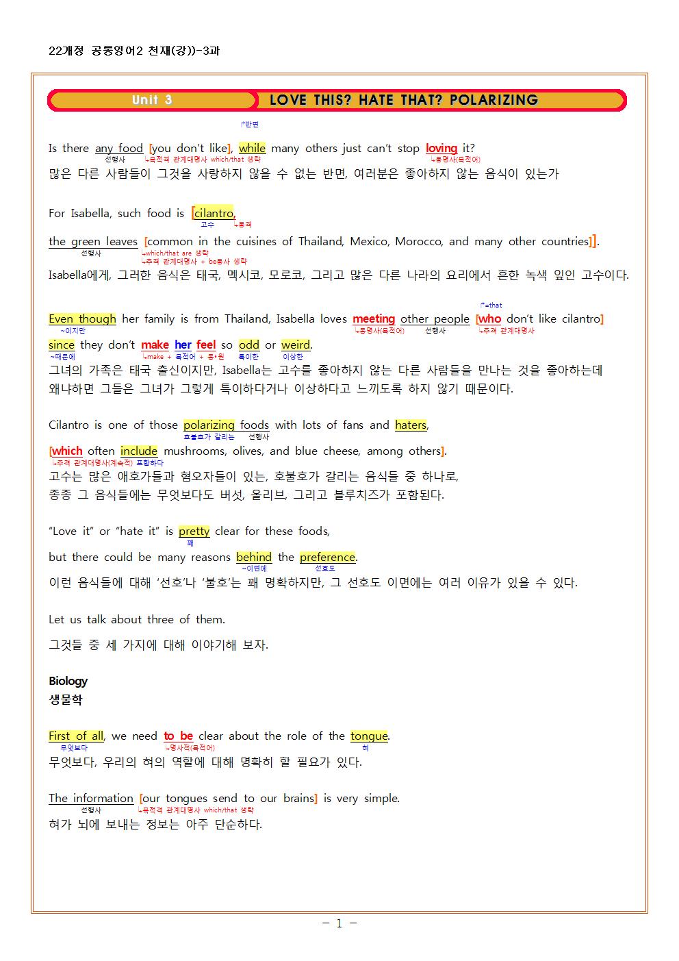 | 2022개정 공통영어2 천재(강) 1과 상세분석 (4) | 2025.09.01 |