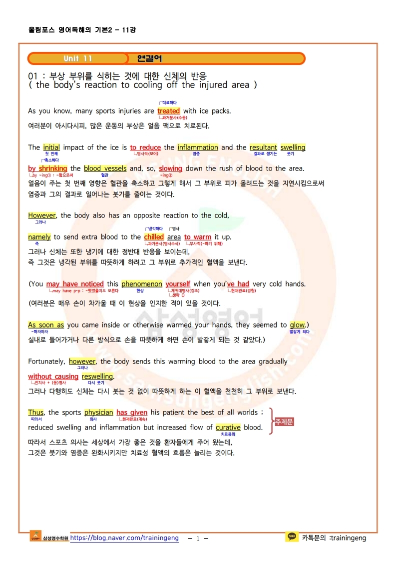 올림포스 영어독해의 기본2 - 11강 지문분석 및 한줄해석